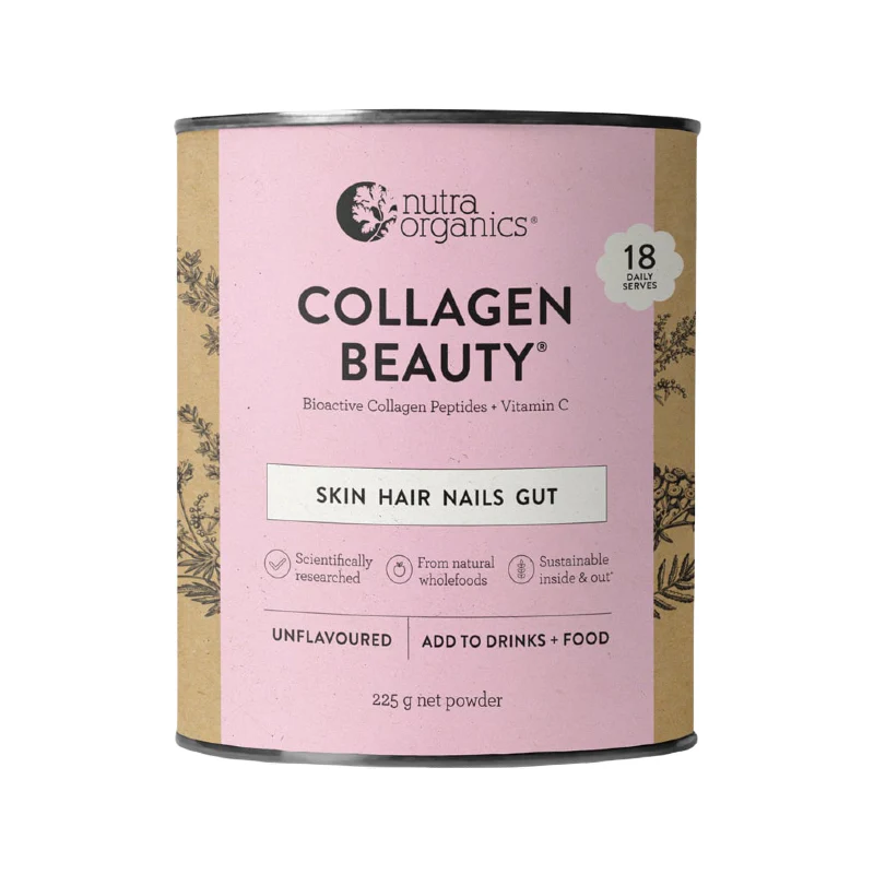 Is your skin showing the first signs of ageing? The natural formulation of Nutra Organics Collagen Beauty increases skin hydration and elasticity to reduce wrinkles and smooth fine lines. In our mid-twenties, our hair and skin begin to degenerate as collagen in our body reduces and we begin to show signs of ageing. Collagen is a protein in the various connective tissues in the body – It is the substance that holds the body together and has several important functions such as replacing and restoring dead skin cells. Nutra Organics Collagen Beauty has been formulated with VERISOL® Collagen Peptides to support the structural integrity of skin and decrease skin ageing factors after eight weeks of use.